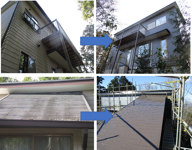 屋根屋さん・大工さんと協力し、傷んだ下地をしっかりと直してから塗装工事を行いました。