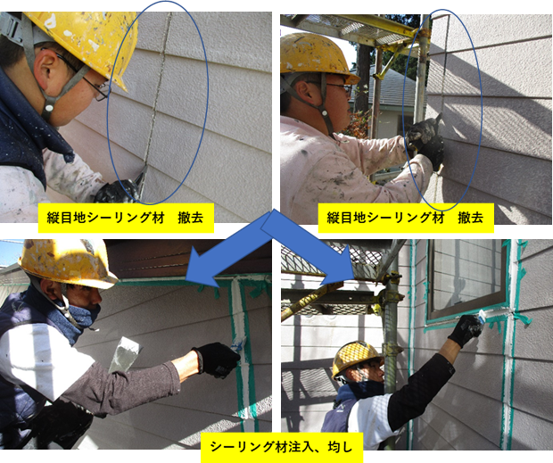 外壁は、劣化した古いシーリングをすべて撤去し、耐久性の高い「オートンイクシード」で新しく打ち替えました。